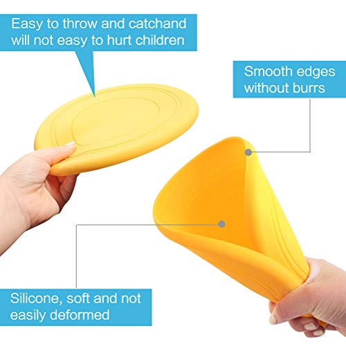 ☆ Weich und leicht: Anders als die normalen Nylon oder Kunststoff flying disks, ist diese weiche Silikon fliegende Scheiben bequemer beim Spielen, einfach zu werfen und zu fangen, wird die Kinder nicht verletzen.