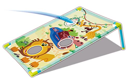 Mit Tiermotiven – Das Spiel ist schnell aufgebaut und kommt mit toller kindgerechter Bedruckung. Giraffe, Nilpferd und Löwe haben alle ihren Mund weit aufgerissen und dienen den Kindern als Wurfziel.