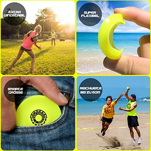 🟡SICHERER FLUG: Durch die hochwertige Verarbeitung der Scheibe und die optimierte Gewichtsverteilung fliegt unsere Minifrisbee besonders sicher durch die Luft und bleibt auch bei Windböen stabil