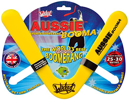 Wicked Aussie Booma ist ein Zwei-Klingen-Mitteldistanz-Sport-Bomerang. Obwohl dieser klassische Boomerang eine Variante vom weltberühmten Wicked-Design ist, wurde er entwickelt, um den gleichen reibungslosen, genauen Rückflug von 25–30 Metern zu bieten.